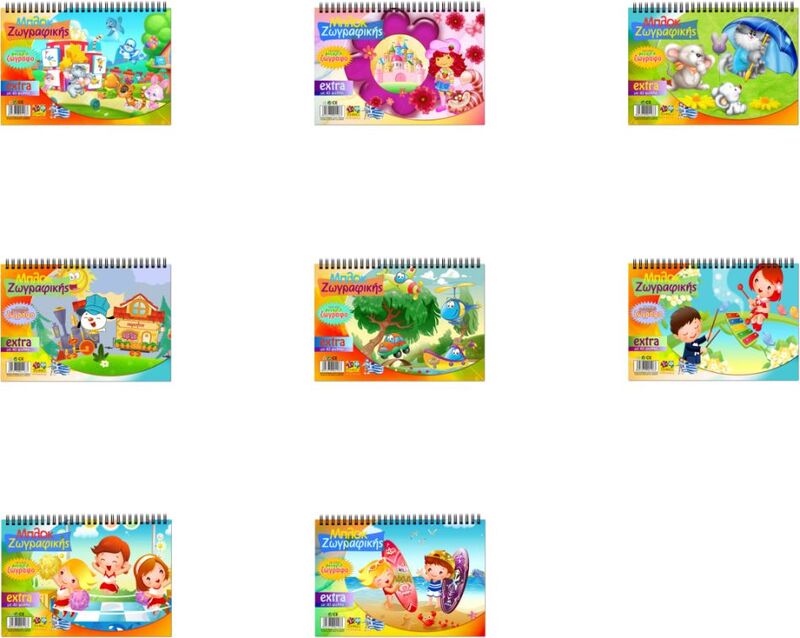 Μπλοκ Ζωγραφικής: Μπλοκ Ζωγραφικής Extra 17x25cm 40 Φύλλων 8 Σχέδια-1Τμχ .Μέγεθος Β5 , με 40 φύλλα, πρώτο φύλλο με προσχέδια, από ευρωπαϊκό χαρτί 70γρ. με διπλό σπιράλ, με εξώφυλλο σε 8 σχέδια.Η επιλογή του σχεδίου θα γίνεται τυχαία.