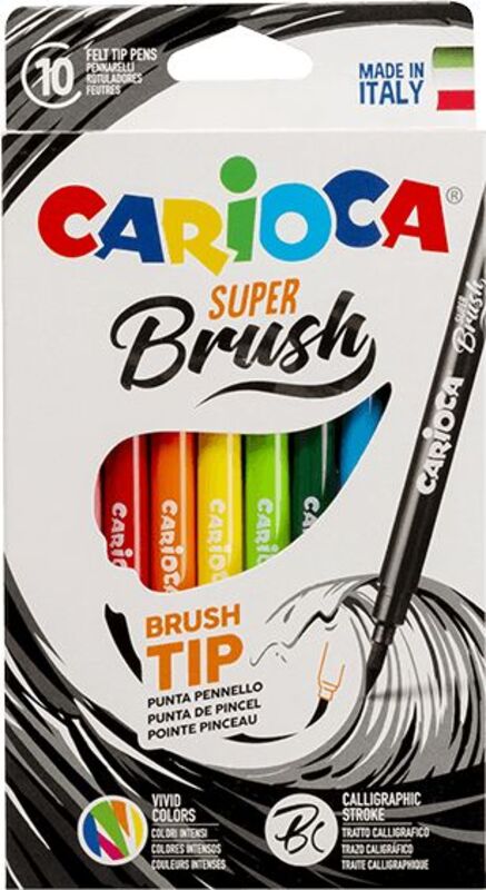 Μαρκαδόροι: Carioca Μαρκαδόροι Πινέλο Super Brush 10Τμχ . Μαρκαδόροι με μύτη πινέλο της Carioca για να δημιουργήσεις μοναδικές ζωγραφιές. Διαθέτουν εύκαμπτη μύτη και ποικιλία φωτεινών χρωμάτων για να μην περιορίζεσαι. Το μελάνι αφαιρείται εύκολα με νερό.