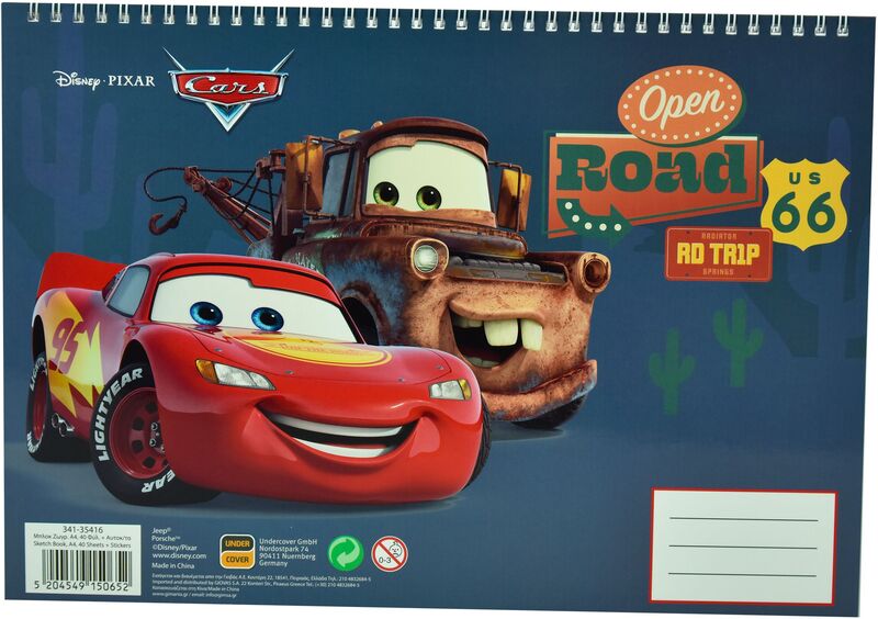Μπλοκ Ζωγραφικής: Cars Μπλοκ Ζωγραφικής Α4 Και Stickers . Δέσιμο με σπιράλ,επιπλέον περιέχονται αυτοκόλλητα και σελίδες με περίγραμμα του ήρωα για να χρωματιστούν.