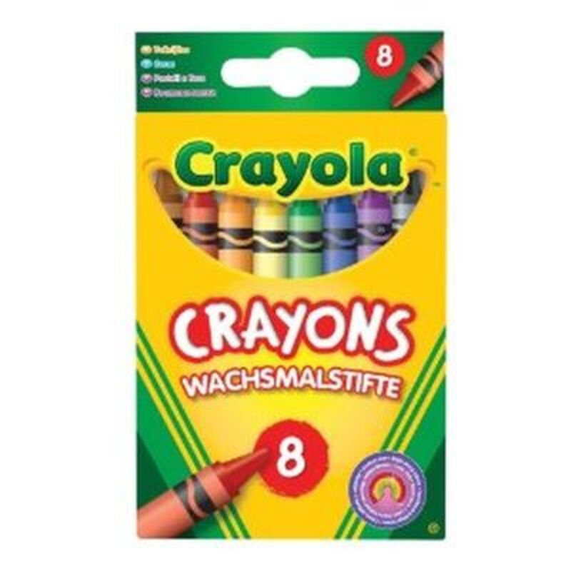Κηρομπογιές: Crayola 8 Πολύχρωμες Κηρομπογιές σχεδιασμένες να είναι αρκετά μαλακές για να αναμιγνύονται, αλλά και αρκετά σκληρές για να αντέχουν τη φθορά και να μη σκίζονται. Κηρομπογιές με αυξημένη πυκνότητα και διπλοτυλιγμένες για πρόσθετη αντοχή που αντέχουν στο σπάσιμο.