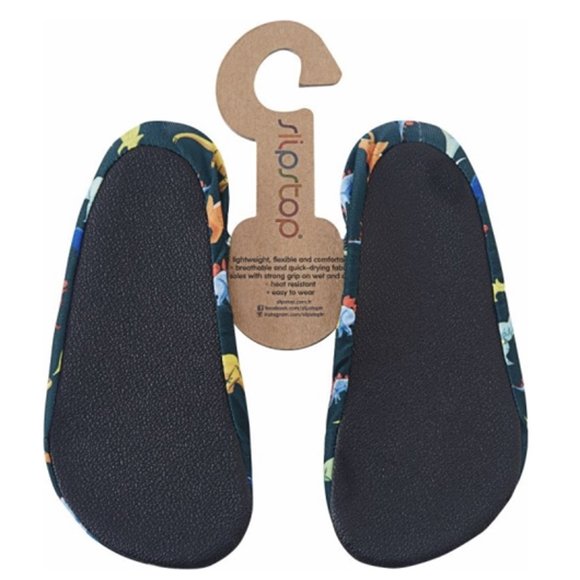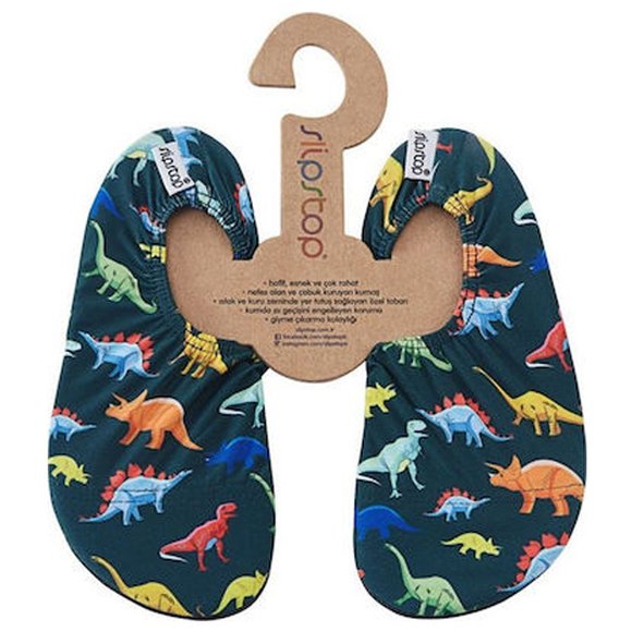 Παιδικά & βρεφικά αντιολισθητικά παντοφλοκαλτσάκια Slipstop, “DINOSAUR”, σε μπλε αποχρώσεις. Τέλος οι ολισθηρές επιφάνειες και η καυτή άμμος! Tα Slipstop θα προστατέψουν τα πόδια των παιδιών σας από την καυτή άμμο στην παραλία και θα συμβάλλουν στη μείωση του κινδύνου ολίσθησης σε υγρά και ολισθηρά δάπεδα εντός και εκτός σπιτιού χάρη στις αντιολισθητικές σόλες. Τα μοναδικά και πολύχρωμα σχέδια θα ενθουσιάσουν όλους τους μικρούς μας φίλους! Ιδανικό για εσωτερικούς αλλά και εξωτερικούς χώρους όπως πισίνα, θάλασσα, παιδική χαρά, νηπιαγωγείο, σπίτι, μπάνιο. Παντοφλάκια κατασκευασμένα από ύφασμα που αναπνέει. Mε αντιολισθητική σόλα για εσωτερικούς και εξωτερικούς χώρους: νηπιαγωγείο, παιδική χαρά, γυμναστήριο, αθλητικές δραστηριότητες, σπίτι, μπάνιο, παραλία, πισίνα, θάλασσα. Μπορείτε να τα φοράτε πάνω από την καλτσούλα τους. Συμβάλλουν στην αποφυγή γλιστρήματος σε βρεγμένα ή στεγνά δάπεδα (Οι σόλες σιλικόνης Slipstop μπορούν να μειώσουν την ολίσθηση, ωστόσο υπάρχει πάντοτε ο κίνδυνος ολίσθησης και πτώσης). Προστατεύουν τα πόδια από τις τραχιές επιφάνειες. Κατασκευασμένο από ύφασμα που στεγνώνει εύκολα, άνετο και ανθεκτικό στο νερό, ιδανικό για κολύμπι. Μοναδικά και πολύχρωμα σχέδια που θα ενθουσιάσουν το παιδί σου. Στην DPAM θα βρείτε όλα τα αγαπημένα σας brands παιδικών καλοκαιρινών παπουτσιών και πέδιλων.