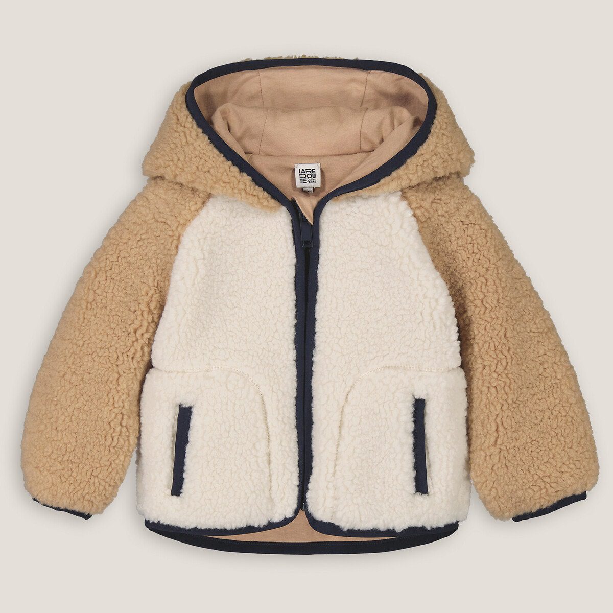 Ζακέτα από συνθετική γούνα με φερμουάρ και κουκούλα Μπεζ