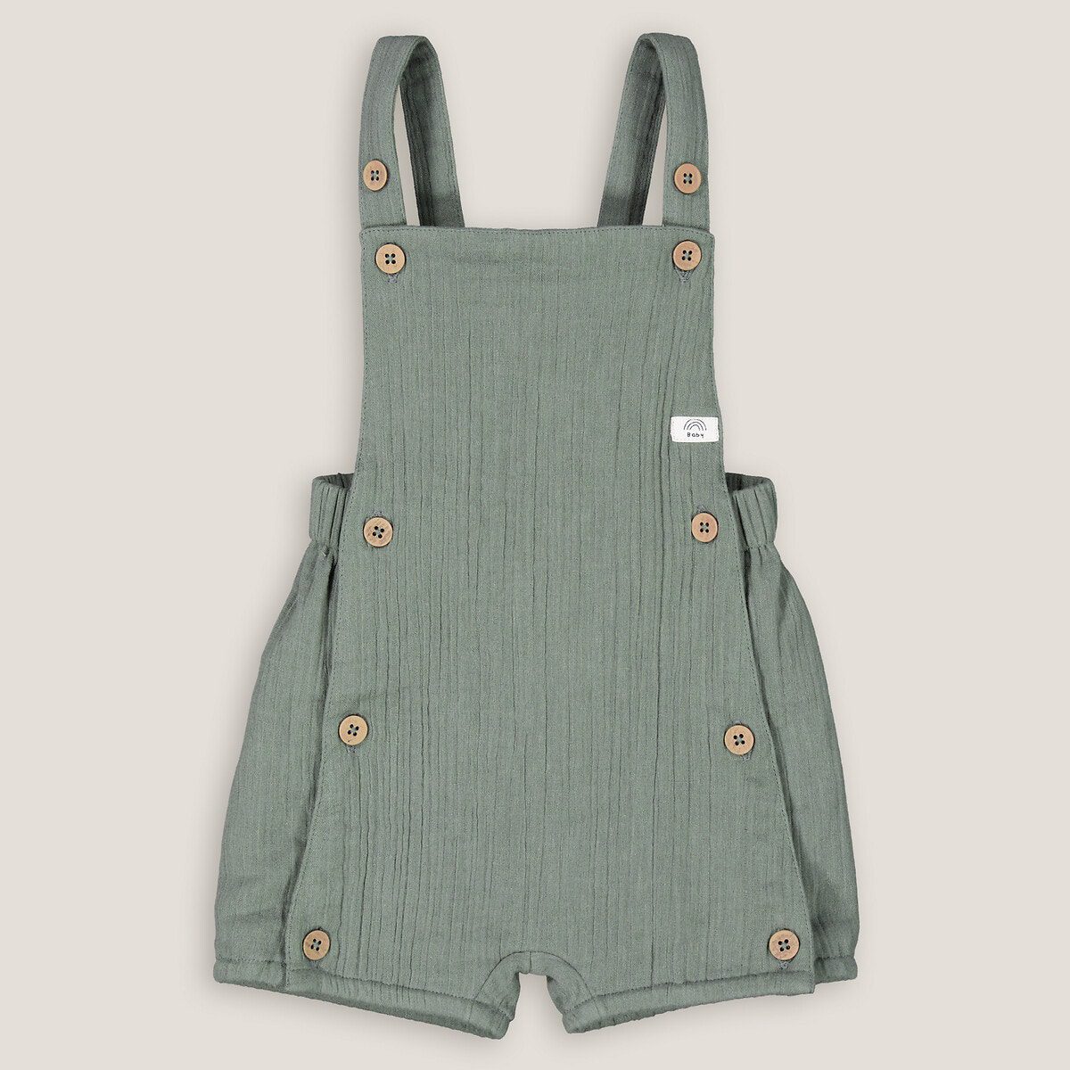 Περιγραφή – Κοντά μπατζάκια – Ρυθμιζόμενες τιράντες – Κούμπωμα μπροστά για να φοριέται εύκολα – Ραμμένη ετικέτα στο πλάι – Λάστιχο στους μηρούς – Φαρδιά μπατζάκιαΣύνθεση και συντήρηση – 100% βαμβάκι – Πλύσιμο στους 30°C στο πρόγραμμα για ευαίσθητα – Σιδέρωμα σε χαμηλή θερμοκρασία – Απαγορεύεται το στεγνωτήριο – Απαγορεύεται το στεγνό καθάρισμα
