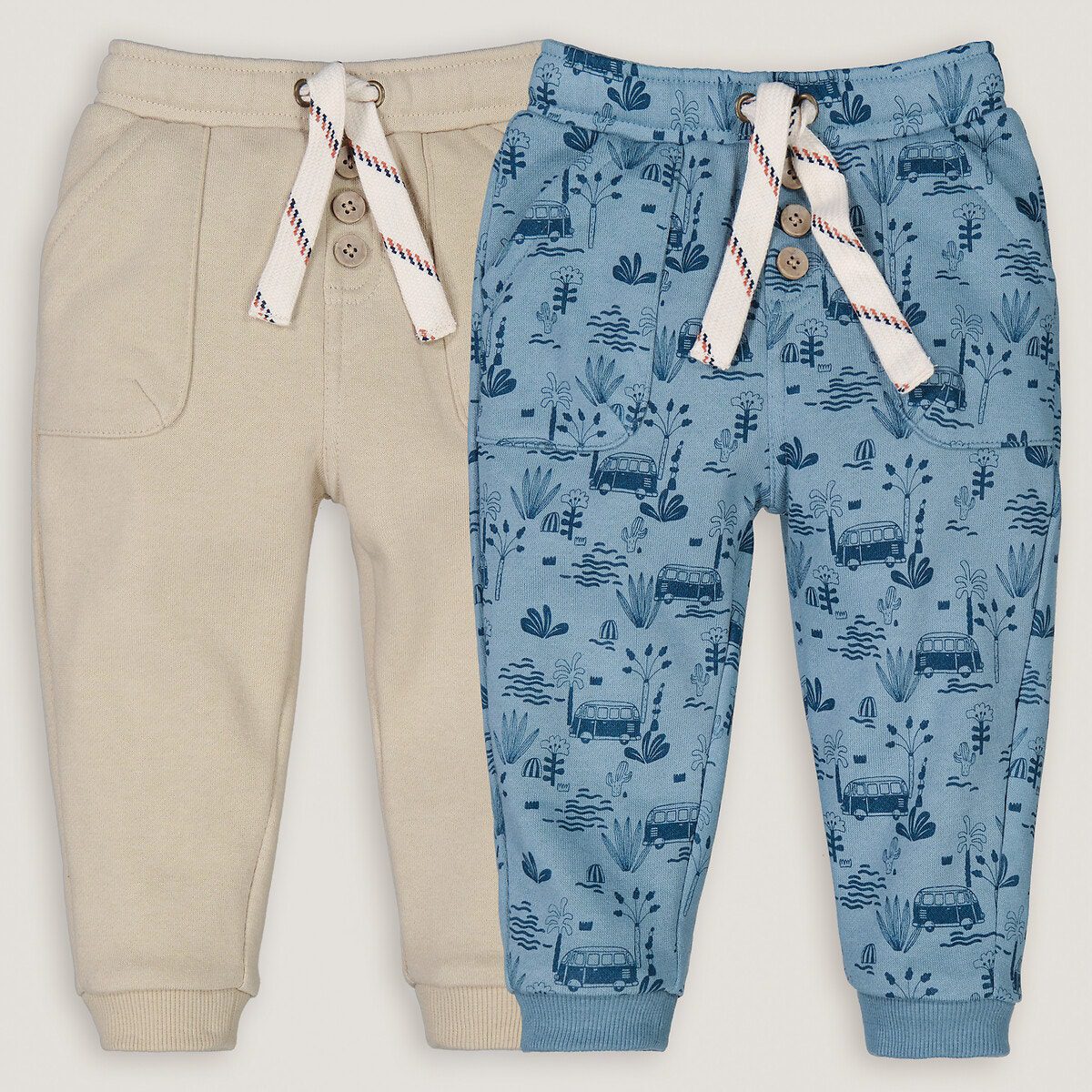 Περιγραφή – Γραμμή jogpant – Κανονική μέση – Σετ των 2 – 1 εμπριμέ με μοτίβο "φορτηγά και φύλλα" + 1 μονόχρωμο – Μέση με λάστιχο, κορδόνι που σφίγγει και 3 απλικέ κουμπιά μπροστά – 2 τσέπες μπροστά – 2 τσέπες με σιρίτι πίσω – Μπατζάκια που σφίγγουν με ελαστικό ριμπ τελείωμα στους αστραγάλους – Ελαφριά φανέλαΣύνθεση και συντήρηση – 60% βαμβάκι, 40% πολυέστερ – Πλύσιμο στο πλυντήριο στους 40°C – Σιδέρωμα σε χαμηλή θερμοκρασία – Στεγνωτήριο σε χαμηλή ταχύτητα – Απαγορεύεται το στεγνό καθάρισμα / η χρήση λευκαντικού – Ετικέτα OEKO-TEX® Standard 100. Η πιστοποίηση OEKO-TEX® Standard 100 είναι μια ανεξάρτητη και διεθνής πιστοποίηση που εγγυάται την απουσία επιβλαβών ή ερεθιστικών ουσιών για το δέρμα και προστατεύει την υγεία των καταναλωτών.