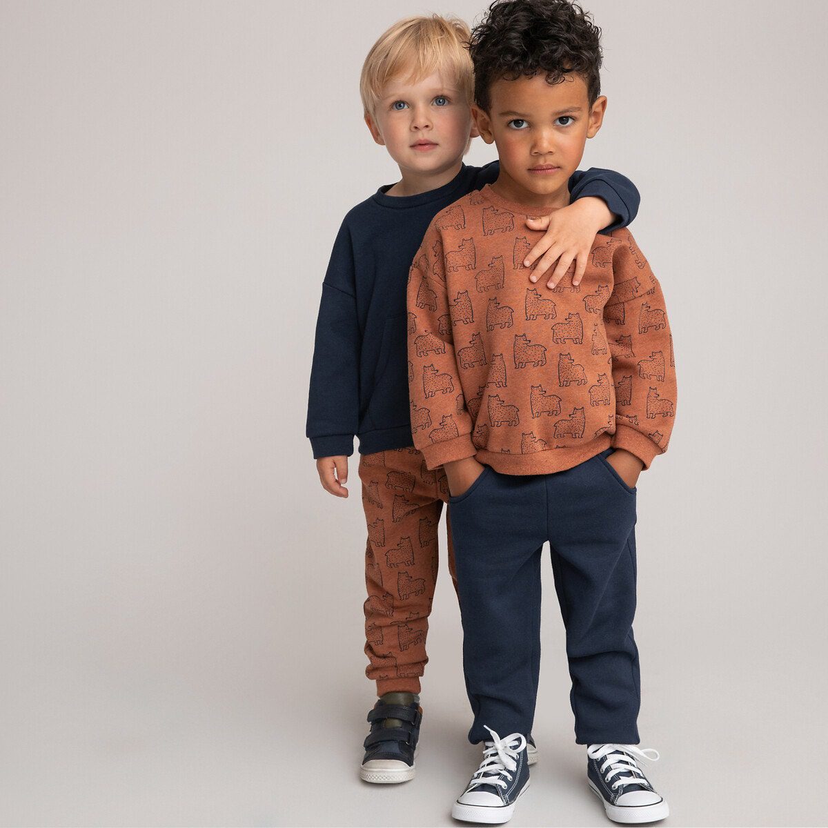 Σετ 2 σύνολα από μαλακή και ζεστή φανέλα που αποτελούνται από φούτερ με στρογγυλή λαιμόκοψη και παντελόνια jogpant.Περιγραφή – Κανονική μέση – Φούτερ με στρογγυλή λαιμόκοψη – Μακριά μανίκια – Άνοιγμα με σούστες μέχρι το μέσο της πλάτης για να φοριούνται εύκολα – Σετ των 2 – 1 εμπριμέ με μοτίβο “αρκούδες” + 1 μονόχρωμο με στάμπα στο στήθος και τσέπες καγκουρό – Παντελόνια φόρμας – Μέση με λάστιχο και κορδόνι που σφίγγει – 2 τσέπες μπροστά – Σετ των 2 – 1 εμπριμέ με μοτίβο “αρκούδες” + 1 μονόχρωμο – Ριμπ τελείωμαΣύνθεση και συντήρηση – Κύριο υλικό: 60% βαμβάκι, 40% πολυέστερ – Δευτερεύον υλικό: 89% βαμβάκι, 11% πολυέστερ – Πλύσιμο στο πλυντήριο στους 40°C – Σιδέρωμα σε χαμηλή θερμοκρασία – Στεγνωτήριο σε χαμηλή ταχύτητα – Απαγορεύεται το στεγνό καθάρισμα / η χρήση λευκαντικούΕτικέτα OEKO-TEX® Standard 100. Η πιστοποίηση OEKO-TEX® Standard 100 είναι μια ανεξάρτητη και διεθνής πιστοποίηση που εγγυάται την απουσία επιβλαβών ή ερεθιστικών ουσιών για το δέρμα και προστατεύει την υγεία των καταναλωτών.