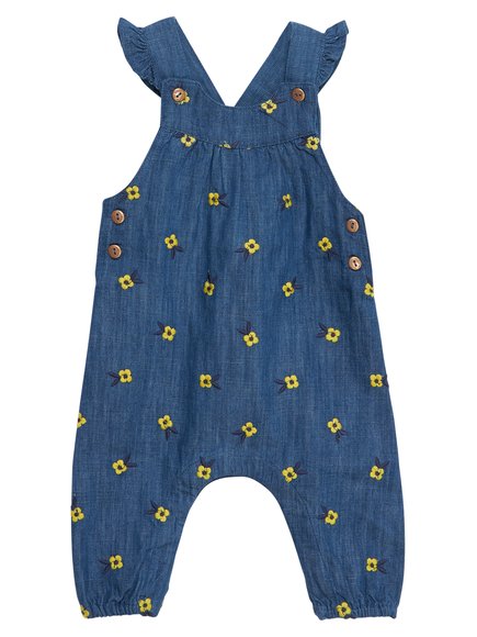 Μια πραγματικά ξεχωριστή ντένιμ σιλουέτα για μικρά κορίτσια. Δένει σταυρωτά στην πλάτη και έχει πολύ ωραία διακόσμηση στις τιράντες, ενώ είναι όλη κεντημένη με κίτρινα λουλουδάκια. Από την ανοιξιάτικη–καλοκαιρινή κολεξιόν της DPAM, Tropical, στην οποία οι γάτες της Σαβάνας και τα τροπικά φυτά είναι οι πρωταγωνιστές. Θα συναντήσετε σε όλα τα προϊόντα της τα floral prints και ζώα της ζούγκλας. Μια συλλογή γεμάτη αγάπη και φιλία. Ένα καλοκαιρινό θέμα με ζεστά χρώματα, όπου το μπλε για κοντράστ δίνει την αίσθηση του ήλιου και των ταξιδιών.