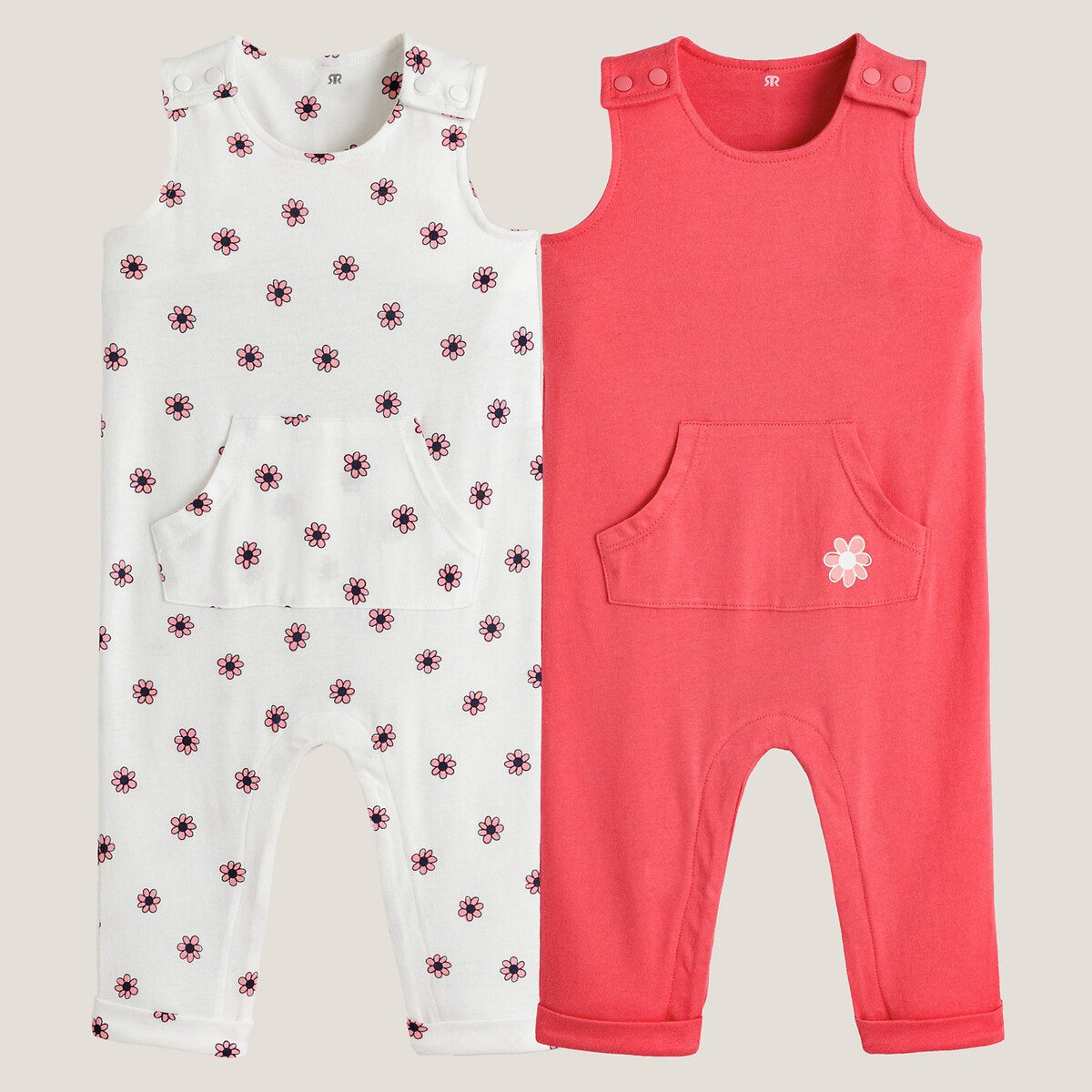 Περιγραφή: – Ολόσωμο φορμάκι – Ίσια γραμμή – Στρογγυλή λαιμόκοψη – Σούστες στους ώμους για να φοριέται εύκολα – Τσέπη καγκουρό μπροστά – Σούστες στον καβάλο μέχρι το μέγεθος των 2 ετών για εύκολο άλλαγμα της πάνας – Ρεβέρ στα μπατζάκια – Σετ των 2 – 1 εμπριμέ + 1 μονόχρωμο με μικρή στάμπα λουλούδι στην τσέπηΣύνθεση και συντήρηση: – 100% βαμβάκι – Πλύσιμο στο πλυντήριο στους 40°C – Σιδέρωμα σε μέτρια θερμοκρασία – Απαγορεύεται το στεγνωτήριο – Απαγορεύεται το στεγνό καθάρισμαΠροϊόν υπεύθυνης παραγωγής – Βαμβάκι βιολογικής γεωργίας: υπεύθυνη επιλογή και κατανάλωση. Γιατί; Επειδή για την παραγωγή του δεν χρησιμοποιούνται χημικά προϊόντα, φυτοφάρμακα, εντομοκτόνα και γενετικά τροποποιημένοι οργανισμοί. Αποτέλεσμα: μικρότερος αντίκτυπος στη βιοποικιλότητα και την υγεία των καλλιεργητών.  – Επιλέγοντας ένα προϊόν με την ετικέτα "STANDARD 100 by OEKO-TEX®" (σίγουρα μια πολύ τεχνική περιγραφή που μπορεί να μην καταλαβαίνετε), επιλέγετε ένα ύφασμα αβλαβές, που δεν ερεθίζει το δέρμα. Μια ανεξάρτητη και διεθνής πιστοποίηση αναφοράς που προστατεύει την υγεία των καταναλωτών. Με γνώμονα την υγεία και την προστασία του περιβάλλοντος.