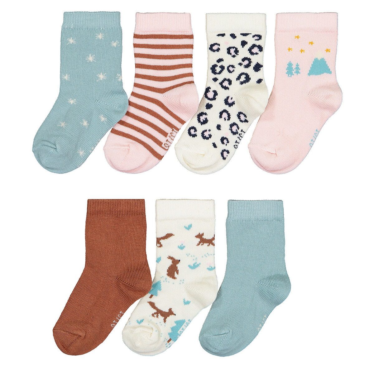 Περιγραφή: – Σετ 7 ζευγάρια κάλτσες: 2 μονόχρωμα + 1 ριγέ + 4 με μοτίβοΣύνθεση και συντήρηση: – Κύριο υλικό: 78% βαμβάκι, 20% πολυαμίδη, 2% ελαστάνη – Δευτερεύον υλικό: 76% βαμβάκι, 22% πολυαμίδη, 2% ελαστάνη – Πλύσιμο στο πλυντήριο στους 30°C – Δεν σιδερώνεται – Απαγορεύεται το στεγνωτήριο – Απαγορεύεται το στεγνό καθάρισμαGo for Good, υπεύθυνη επιλογή – Αυτό το προϊόν με ετικέτα STANDARD 100 από την OEKO-TEX® (πιστοποιητικό CQ 1102/4 IFTH) ακολουθεί πιστοποιημένη και ελεγχόμενη διαδικασία κατασκευής πιστοποιημένη και ελεγχόμενη για την προστασία της επιδερμίδας. Η πιστοποίηση STANDARD 100 από την OEKO-TEX® είναι η πρώτη ετικέτα που ανταποκρίνεται στις ανάγκες των καταναλωτών σε θέματα ανθρωποοικολογίας. Εγγυάται την απουσία επιβλαβών ή ερεθιστικών για το δέρμα ουσιών στα πιστοποιημένα προϊόντα.