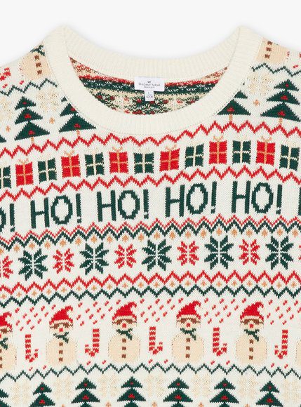 Ανδρικό μακρυμάνικο πουλόβερ της εταιρείας Sergent Major σε μπεζ χρώμα με σχέδιο από χριστουγεννιάτικα σχέδια και μοτίβα σε διάφορα χρώματα. Η κατάλληλη επιλογή για τους μπαμπάδες για να είναι ασορτί με το παιδί τους.