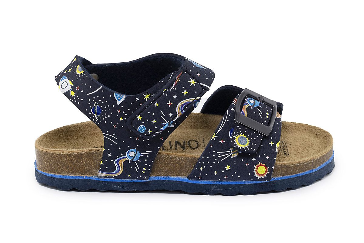 Παιδικά πέδιλα για αγόρια με δυο λουράκια για να προσαρμόζεται και να εφαρμόζει καλύτερα σε κάθε ποδαράκι. Οικολογικός δερμάτινος πάτος για άνετο πάτημα. Η σόλα που αγκαλιάζει όλο το πόδι και με την ανατομία της διευκολύνει την βάδιση του παιδιού και είναι σταθερή, ευλύγιστη και αντιολισθητική για μεγαλύτερη ασφάλεια. Για όλες τις ώρες και πολύ εύκολο να συνδυαστεί. Τα παιδιά που αγαπούν τον κόσμο του διαστήματος, θα το λατρέψουν!