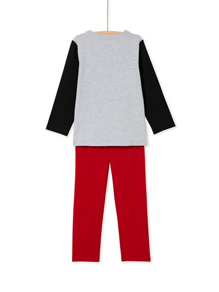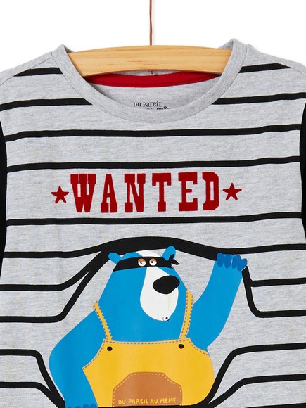 Παιδικές πιτζάμες για αγόρια. Το σετ περιέχει μπλούζα και παντελόνι. Το παντελόνι είναι σε υπέροχο κόκκινο χρώμα. Η μπλούζα είναι γκρι με μαύρες ρίγες και μαύρα μανίκια. Στο κέντρο απεικονίζεται ένας αρκούδος που καταζητείται. Με μαλακό ύφασμα. Από τη φθινοπωρινή/χειμερινή συλλογή της DPAM!