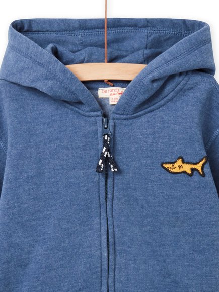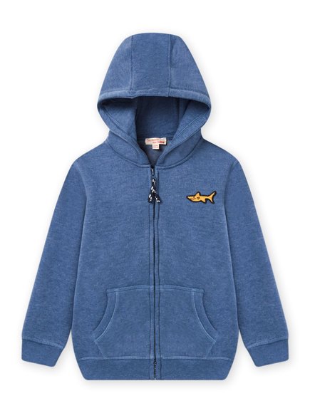 Μπλε ζακέτα με καρχαρία για αγόρια. Φοριέται εύκολα, κλείνει με φερμουάρ, διαθέτει κουκούλα και δύο τσέπες. Ιδανική για το σχολείο, την άθληση και τις υπόλοιπες δραστηριότητες. Συνδυάστε τη με παντελόνι φόρμας ή τζιν για τέλειο street look!