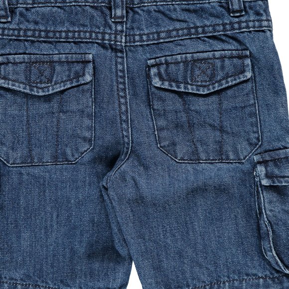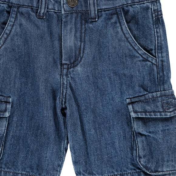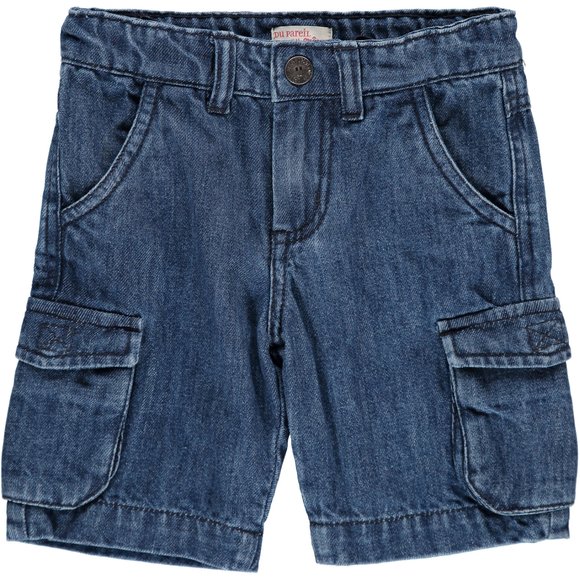 Παιδική τζιν βερμούδα για αγόρια με μεγάλες στρατιωτικές τσέπες και ξεβαμμένο προπλυμένο στιλ για σούπερ κουλ αγόρια. Τα παιδικά ρούχα DPAM παραδίδουν μαθήματα στυλ στους μικρούς τους φίλους.
