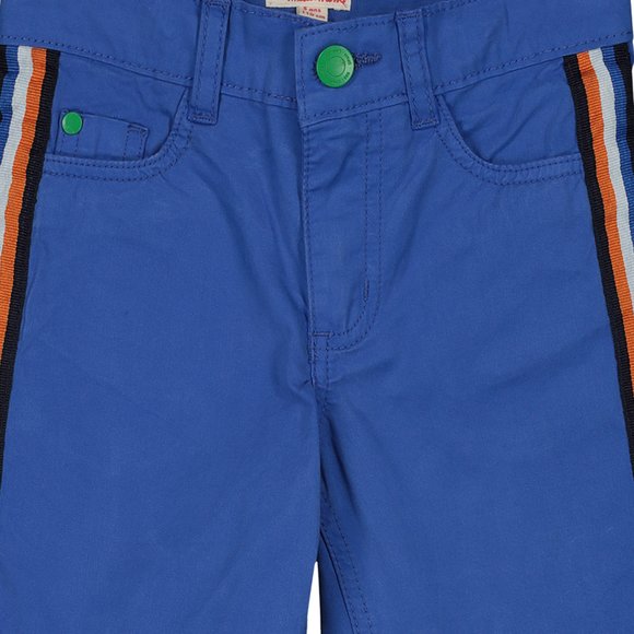 Απίθανη παιδική βερμούδα για αγόρια εκκολαπτόμενους ραλίστες μοτοσικλετιστές. Είναι σε έντονο μπλε ίντιγκο χρώμα, και έχει πλαϊνές ρίγες μοιάζοντας ακριβώς με την στολή ενός μοτοσικλετιστή. Από την ανοιξιάτικη και καλοκαιρινή κολεξιόν της DPAM που είναι εμπνευσμένη από την πανέμορφη πολύχρωμη πόλη της Κοπεγχάγης. Στιλ, φαντασία, χρώμα και δράση για τους νεαρούς σας με την μοναδικότητα και την ποιότητα της DPAM.