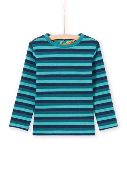 Παιδική μπλούζα διπλής όψης για αγόρια. Μία όψη για τους λάτρεις των δεινοσαύρων και μία μοδάτη σε ριγέ μοτίβο.