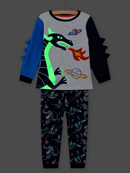 Παιδική πιτζάμα για αγόρια που φωσφορίζει στο σκοτάδι. Υπέροχη πιτζάμα σε γκρι και μπλε χρωματισμούς με σχέδιο δράκους που θα ξετρελάνει τους μικρούς μας φίλους.