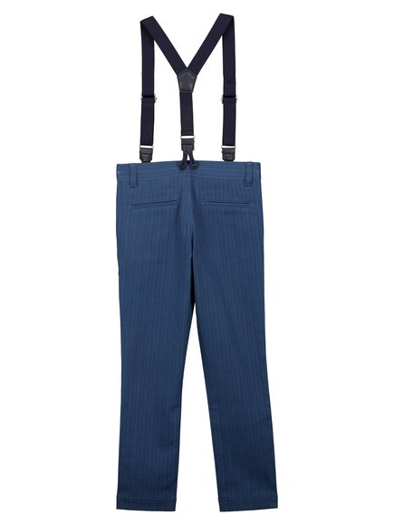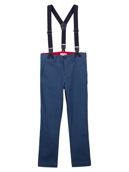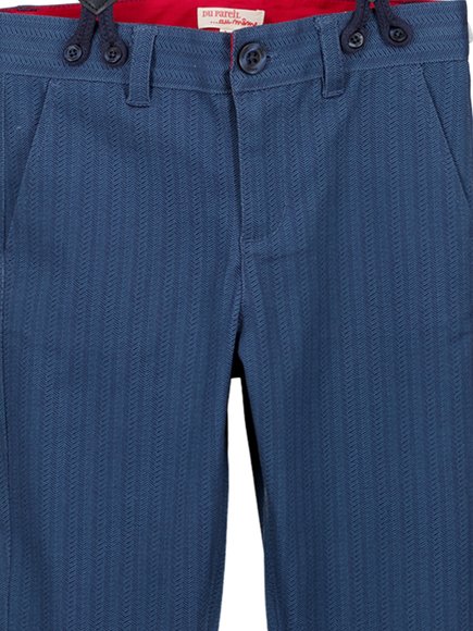 Παντελόνι σε navy χρώμα με κόκκινες λεπτομέρειες και τιράντες για στυλάτα αγόρια. Απαραίτητο ρούχο για εορταστικές εμφανίσεις. Από τη συλλεκτική Χριστουγεννιάτικη συλλογή της DPAM «Happy Noel».