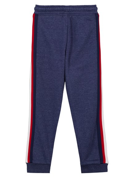 Τέλεια παιδική φόρμα σε μπλε μανέζ χρώμα, για αγόρια για όλες τις στιγμές της ημέρας. Ζεστή και βολική με λάστιχα στη μέση και στο τελείωμα για καλύτερη εφαρμογή. Στα πλάγια φέρει τρεις κάθετες γραμμές, μια λευκή, μια μπλε και μια κόκκινη, σε κάθε πόδι, που ομορφαίνει το σχέδιο του ρούχου και σίγουρα θα ψηλώνει το αγοράκι σας. Πάντα με την υπογραφή της φθινοπωρινής και χειμερινής κολεξιόν DPAM για ποιότητα και στιλ.
