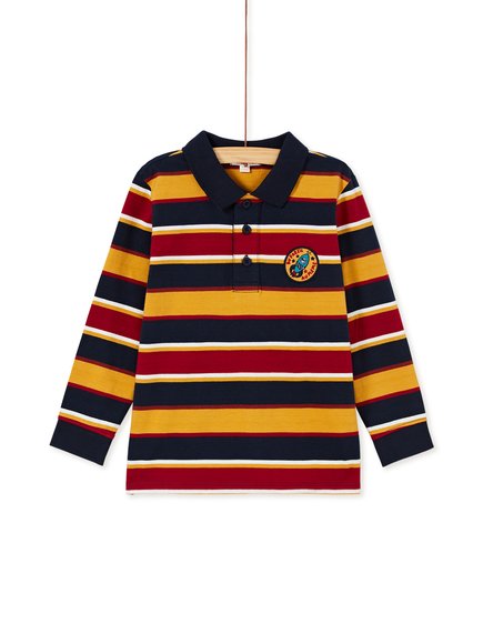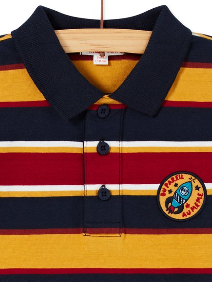 Παιδικό πόλο για κόμψα αγόρια! Έχει οριζόντιες ρίγες σε τρία χρώματα, χαριτωμένο γιακά και 3 κουμπάκια στο κλείσιμο καθώς και ένα διακοσμητικό διαστημόπλοιο! Η συλλογή AW20 της DPAM θα ενθουσιάσει μικρούς και μεγάλους!