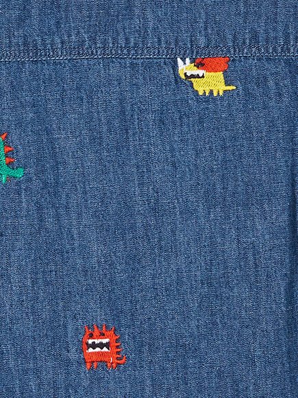 Παιδικό πουκάμισο για αγόρια. Σε blue jean χρώμα και με διάσπαρτα κεντημένα τερατάκια που είναι έτοιμα για περιπέτειες. Με μαλακό βαμβακερό ύφασμα για να φοριέται άνετα είτε μόνο του είτε πάνω από t-shirts και λεπτές μακρυμάνικες μπλούζες. Από τη φθινοπωρινή/χειμερινή συλλογή της DPAM!