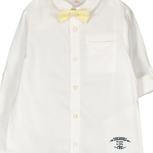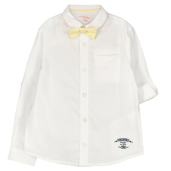 Λευκό μακρυμάνικο πουκάμισο για αγόρια, ιδανικό και για casual αλλά και για περισσότερο επίσημες εμφανίσεις. Με μανίκια που γυρίζουν και στερεώνουν με κουμπιά και συνοδευτικό κίτρινο παπιγιόν. Από την ανοιξιάτικη και καλοκαιρινή εορταστική κολεξιόν της DPAM που είναι εμπνευσμένη από την ιστορική Πομπηία. Στιλ, φαντασία, χρώμα και δράση για τους νεαρούς σας με την μοναδικότητα και την ποιότητα της DPAM.