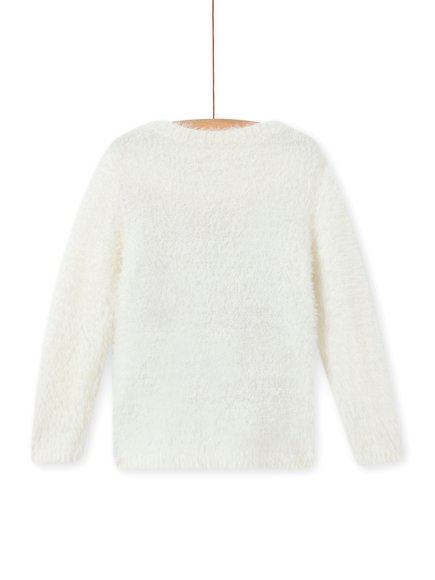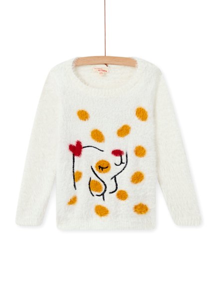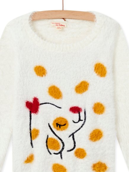 Παιδικό πουλόβερ για κορίτσια σε εκρού χρώμα με σχέδιο σκυλάκι και κίτρινα πουά.