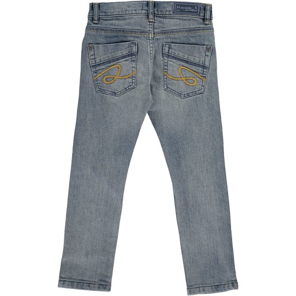 Πολύ μοντέρνο παιδικό τζιν παντελόνι για αγόρια σε ξεβαμμένο χρώμα, με ιδιαίτερες πίσω τσέπες και μια πολύ όμορφη στην μπροστά δεξιά… Στυλ, φινέτσα και μοναδική ποιότητα DP…am