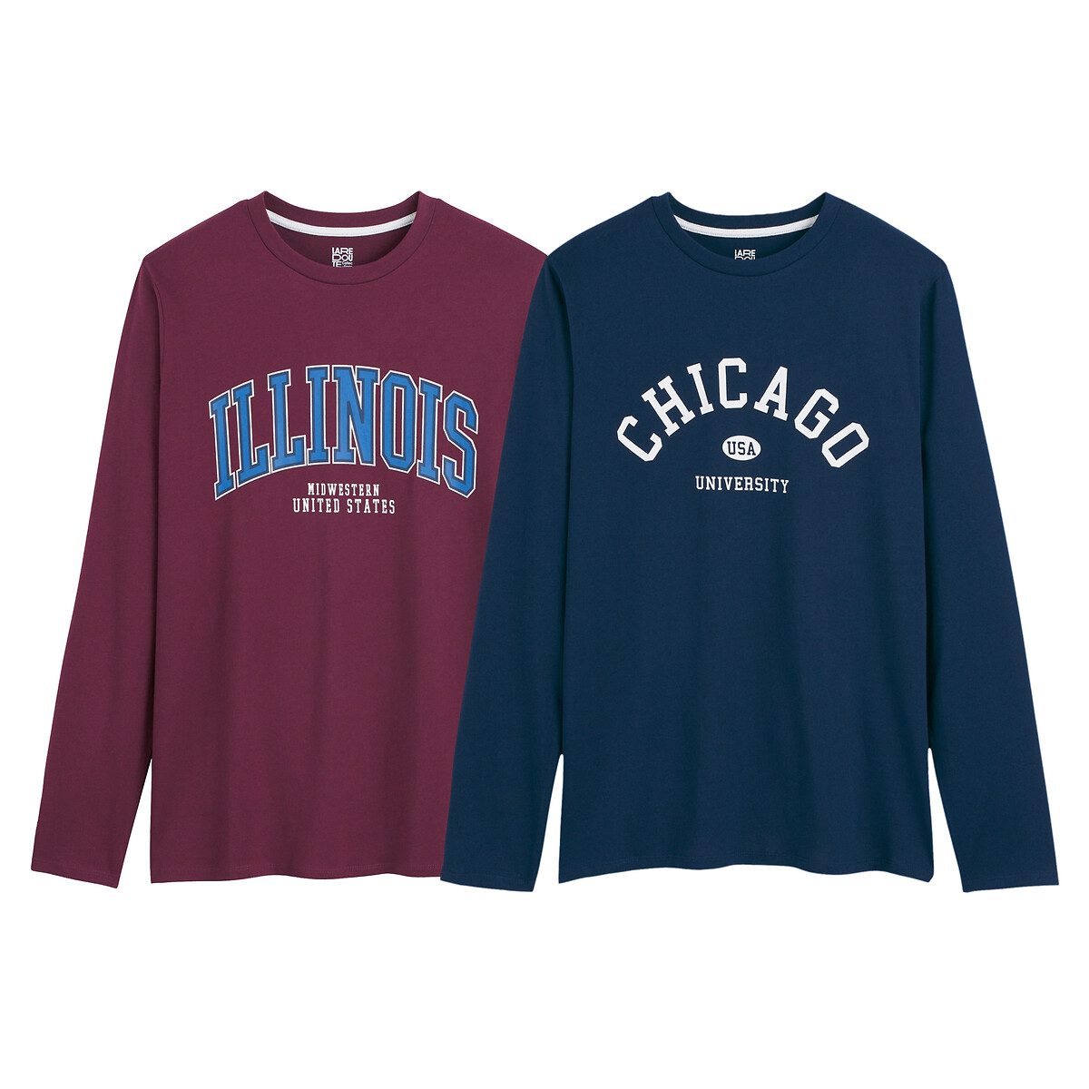 Περιγραφή – Μακριά μανίκια – Στρογγυλή λαιμόκοψη – Σετ των 2 – Διαφορετική στάμπα μπροστά σε κολεγιακό στυλΣύνθεση και συντήρηση – 100% βαμβάκι – Για τις οδηγίες συντήρησης, δείτε την ετικέτα του προϊόντος.
