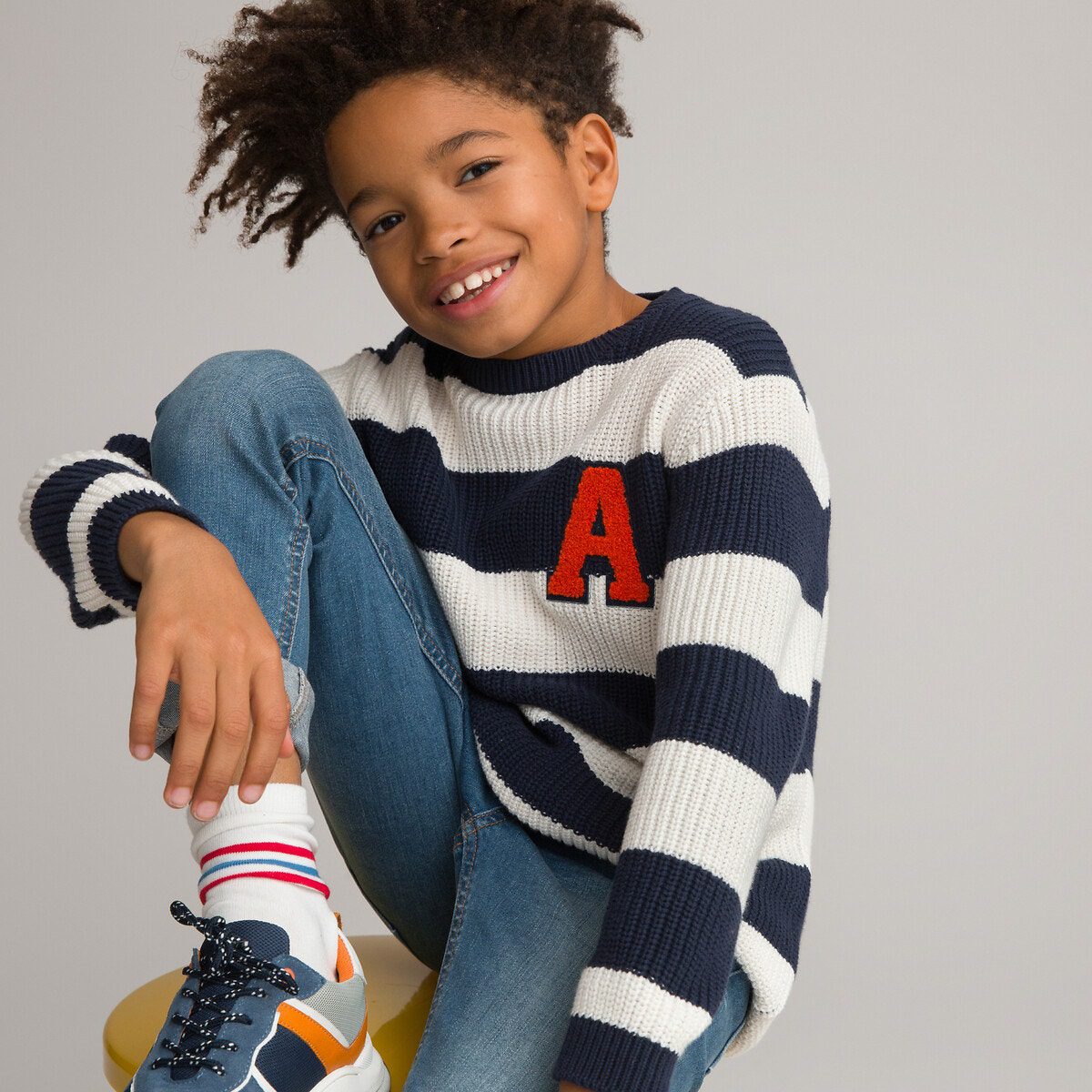 Περιγραφή – Μακριά μανίκια – Στρογγυλή λαιμόκοψη – Χοντρή πλέξη – Μοτίβο με ρίγες – Μπουκλέ σήμα κεντημένο στο στήθοςΣύνθεση και συντήρηση: – 100% βαμβάκι – Πλύσιμο στους 30°C στο πρόγραμμα για ευαίσθητα – Σιδέρωμα σε χαμηλή θερμοκρασία – Επίπεδο στέγνωμα – Απαγορεύεται το στεγνό καθάρισμα / η χρήση λευκαντικού