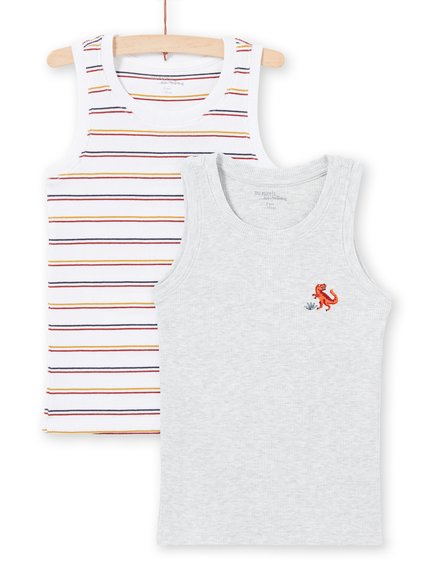 Σετ παιδικά αμάνικα φανελάκια για αγόρια σε δύο διαφορετικά χρώματα και σχέδια.