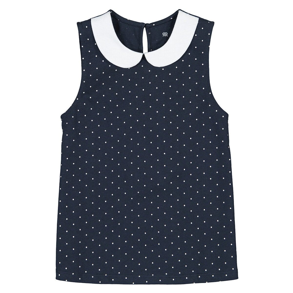 Αμάνικη μπλούζα με πουά και στρογγυλό γιακαδάκι Μπλε