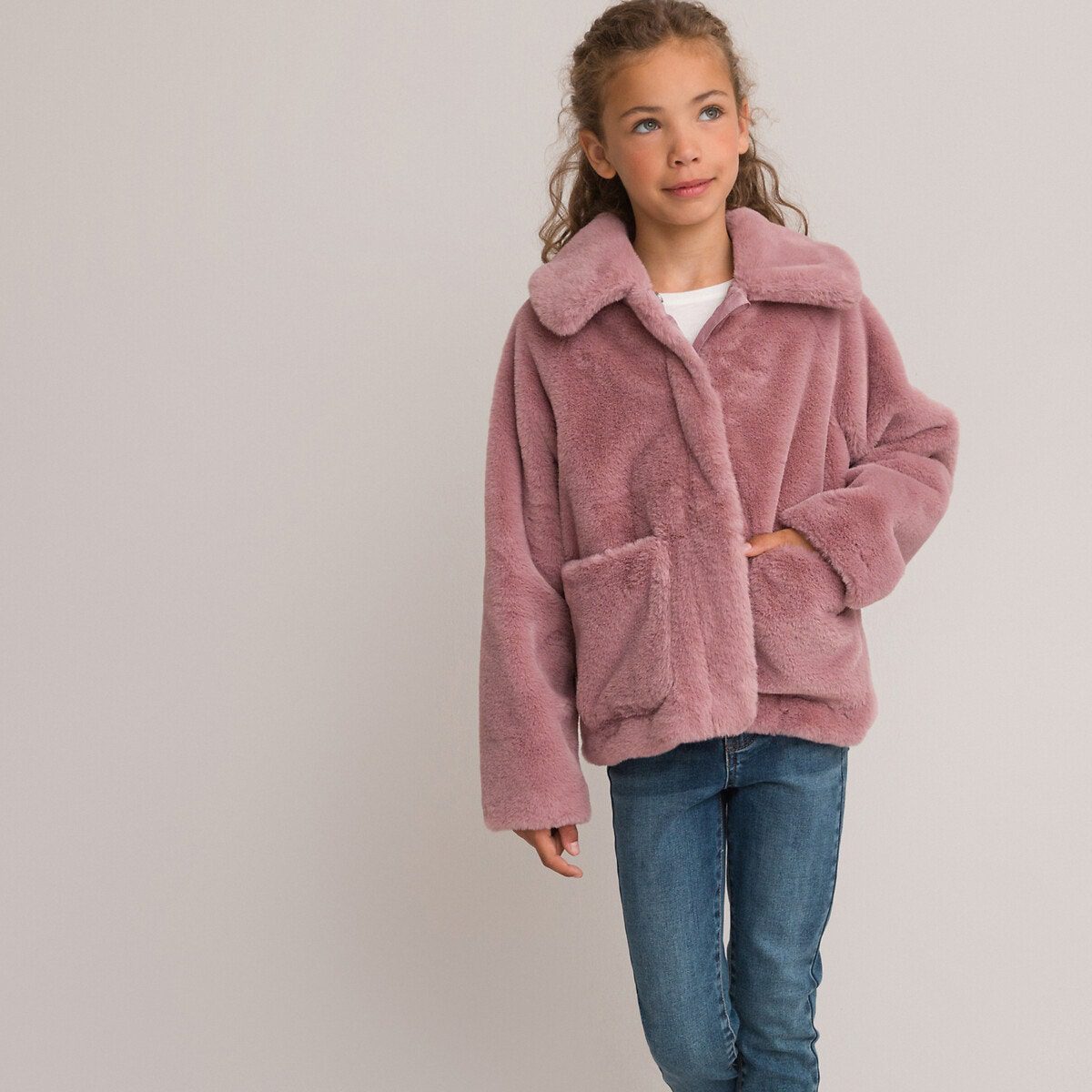 Ζεστό παλτό, άνετο και αφράτο. Το κοριτσάκι σας θα το λατρέψει!Περιγραφή – Για το χειμώνα – Από συνθετική γούνα – Μυτερός γιακάς – Μακριά μανίκια – Κλείνει με φερμουάρ κάτω από πατιλέτα με σούστες – 2 τσέπες μπροστά – 1 τσέπη στο εσωτερικό με ραμμένη ετικέτα για να γράψετε το όνομα του παιδιού – Μήκος: κοντό μήκοςΣύνθεση και συντήρηση – Κύριο υλικό: 100% πολυέστερ – Φόδρα: 100% πολυέστερ – Πλύσιμο στους 30°C στο πρόγραμμα για ευαίσθητα – Απαγορεύεται το σιδέρωμα – Απαγορεύεται το στεγνωτήριο – Απαγορεύεται το στεγνό καθάρισμα