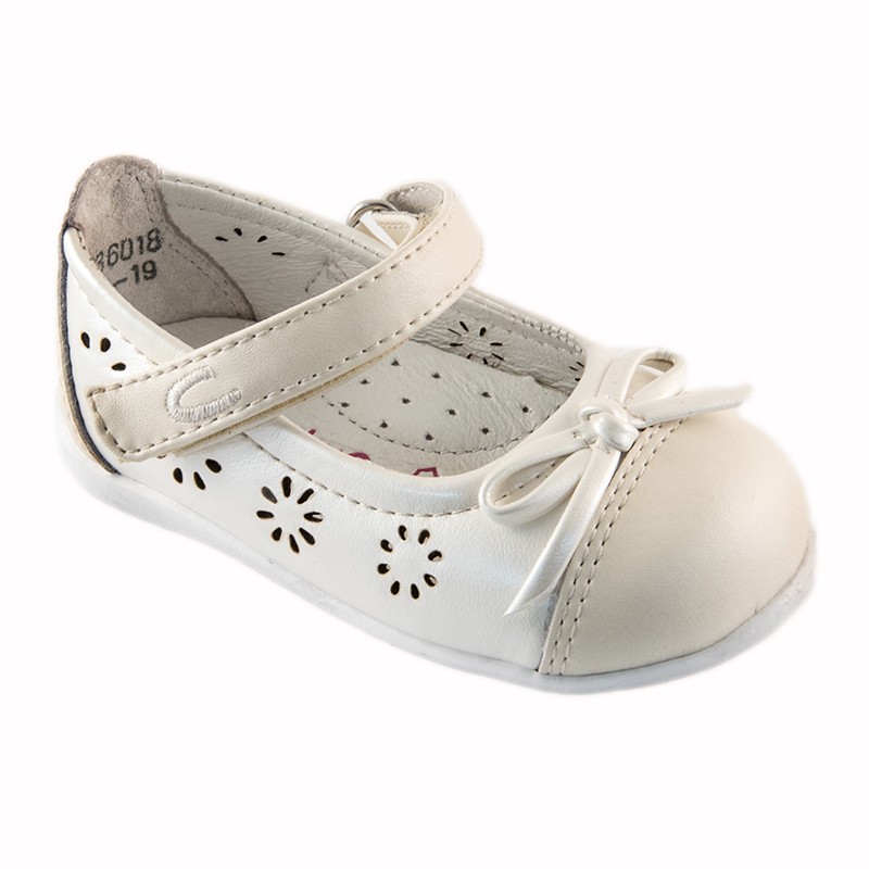 Μπαρέτα CROCODILINO για κορίτσι, σε εκρού, με φιογκάκι και τρυπητά λουλουδάκια για κομψές εμφανίσεις.