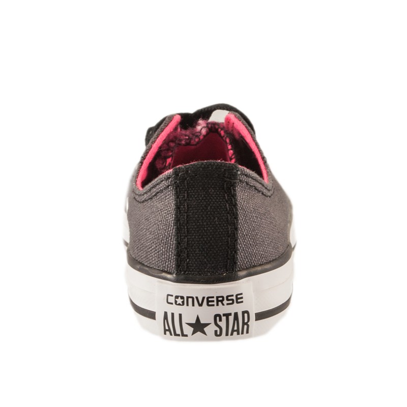 Πάνινο All Star για κορίτσι, σε γκρι και φούξια χρώμα, με χοντρή λευκή σόλα από καουτσούκ και μαύρα κορδόνια.