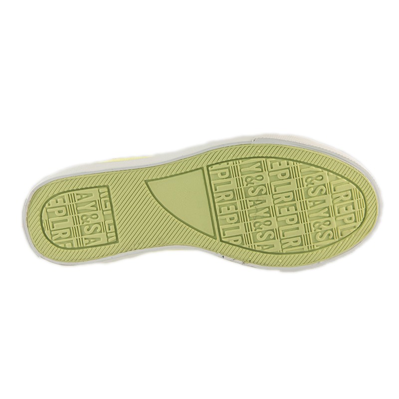 Έχει ασημί λεπτομέρεια στο πλάι και κεντητό το αρχικό γράμμα της εταιρίας. Είναι μοντέρνο και εντυπωσιακό. Διαθέτει χοντρή λευκή σόλα από καουτσούκ που πλαισιώνεται από μία πράσινη γραμμή. Είναι 100% βαμβακερό και εξασφαλίζει άνετο περπάτημα. Πλένεται κανονικά στο πλυντήριο.
