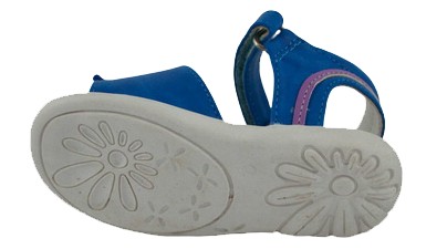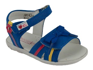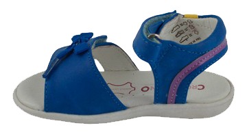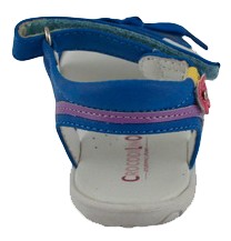 Πέδιλο CROCODILINO για κορίτσι, σε μπλε, με κουμπώματα βέλκρο, πολύχρωμες ιδιαίτερες γραμμές, φιογκάκι και καρδούλα για διακόσμηση.