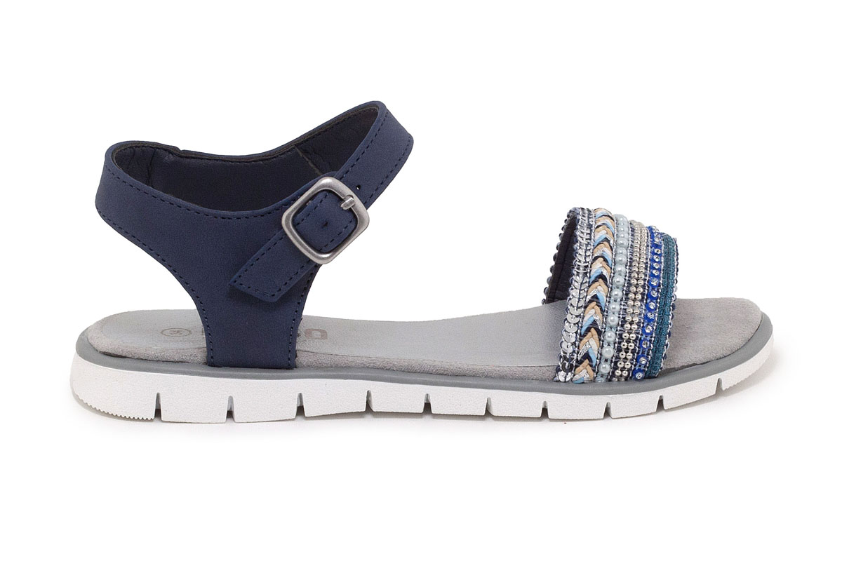 Παιδικά πέδιλα σε στυλ ethnic για ξεχωριστές εμφανίσεις της μικρή σας! Αυτό το πέδιλο θα κλέψει την παράσταση με την γλυκιά απόχρωση του μπλε και τις κεντημένες λεπτομέρειες. Η σόλα του είναι ευλύγιστη και αντιολισθητική για μεγαλύτερη ασφάλεια, άνετη και μαλακή για να για να διευκολύνει την βάδιση του παιδιού.