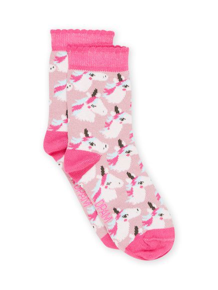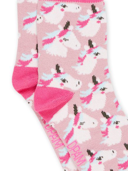 Παιδικές κάλτσες για κορίτσια σε αποχρώσεις ροζ και φούξια με σχέδια μονόκερους. Πάντα με τη μοναδική ποιότητα της Dpam