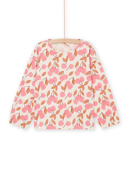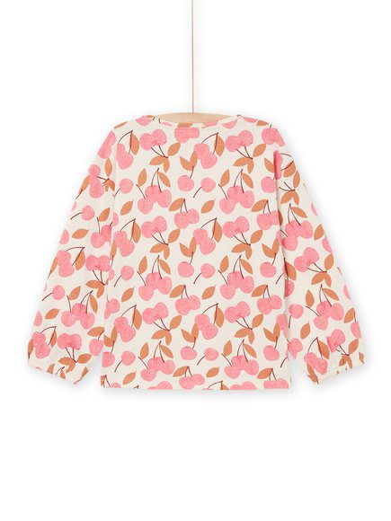 Παιδική εκρού μακρυμάνικη μπλούζα για κορίτσια με σχέδια κερασάκια σε όλη της την επιφάνεια. Πάντα με τη μονδική ποιότητα της Dpam!