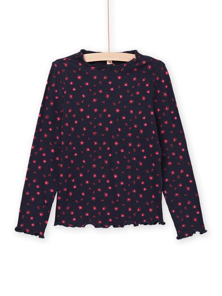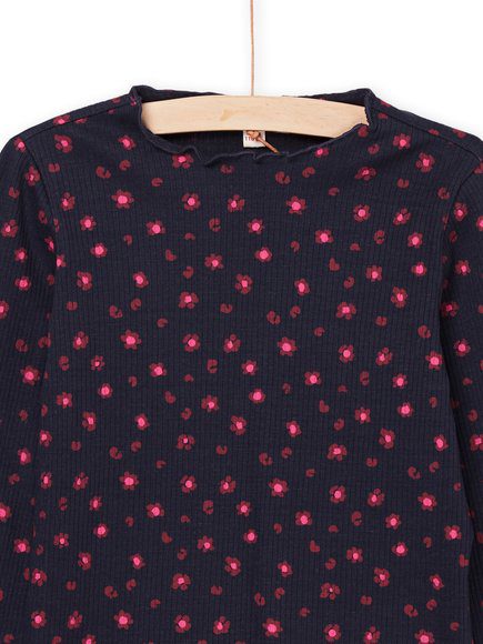 Παιδικη Σκουρα Μπλε Φλοραλ Μακρυμανικη Μακο Μπλουζα Για Κοριτσια - Σκουρο Μπλε