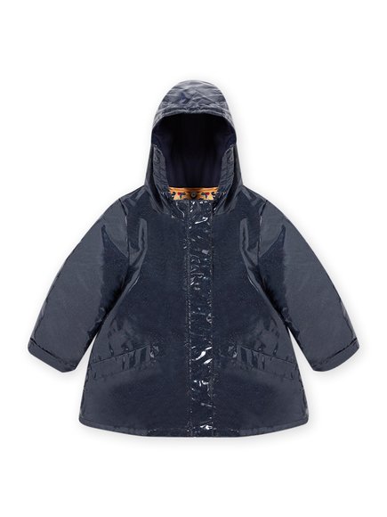 Εντυπωσιακό παιδικό αδιάβροχο μπουφάν 3 σε 1 για κορίτσια σε μπλε χρώμα με διακριτικό glitter. Διαθέτει εσωτερικό floral μπουφάν σε κίτρινους και κόκκινους χρωματισμούς, το οποίο αποσπάται.