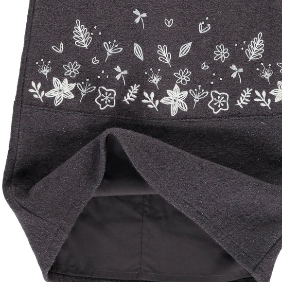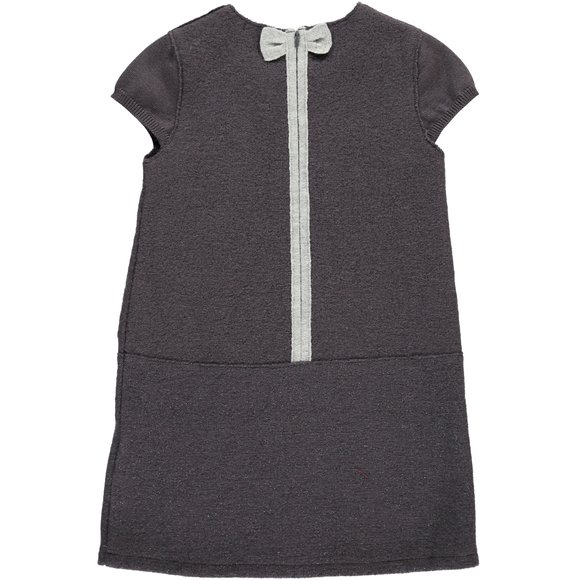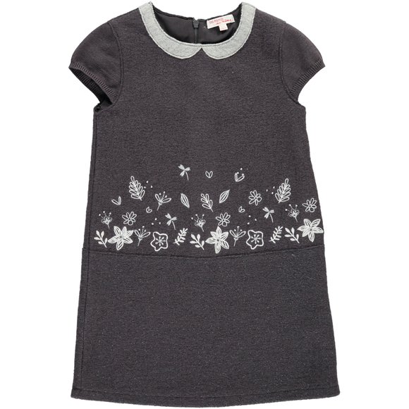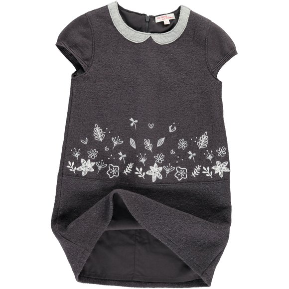 Ένα κλασσικό παιδικό κοντομάνικο μάλλινο φόρεμα για κορίτσια από την DP…am. Σε γκρι χρώμα με λαιμό Peter Pan σε ανοιχτότερη απόχρωση που κάνει μια όμορφη χρωματική αντίθεση, εμπριμέ κεντήματα στο μπροστά μέρος, κοντό μανίκι και εσωτερική επένδυση
