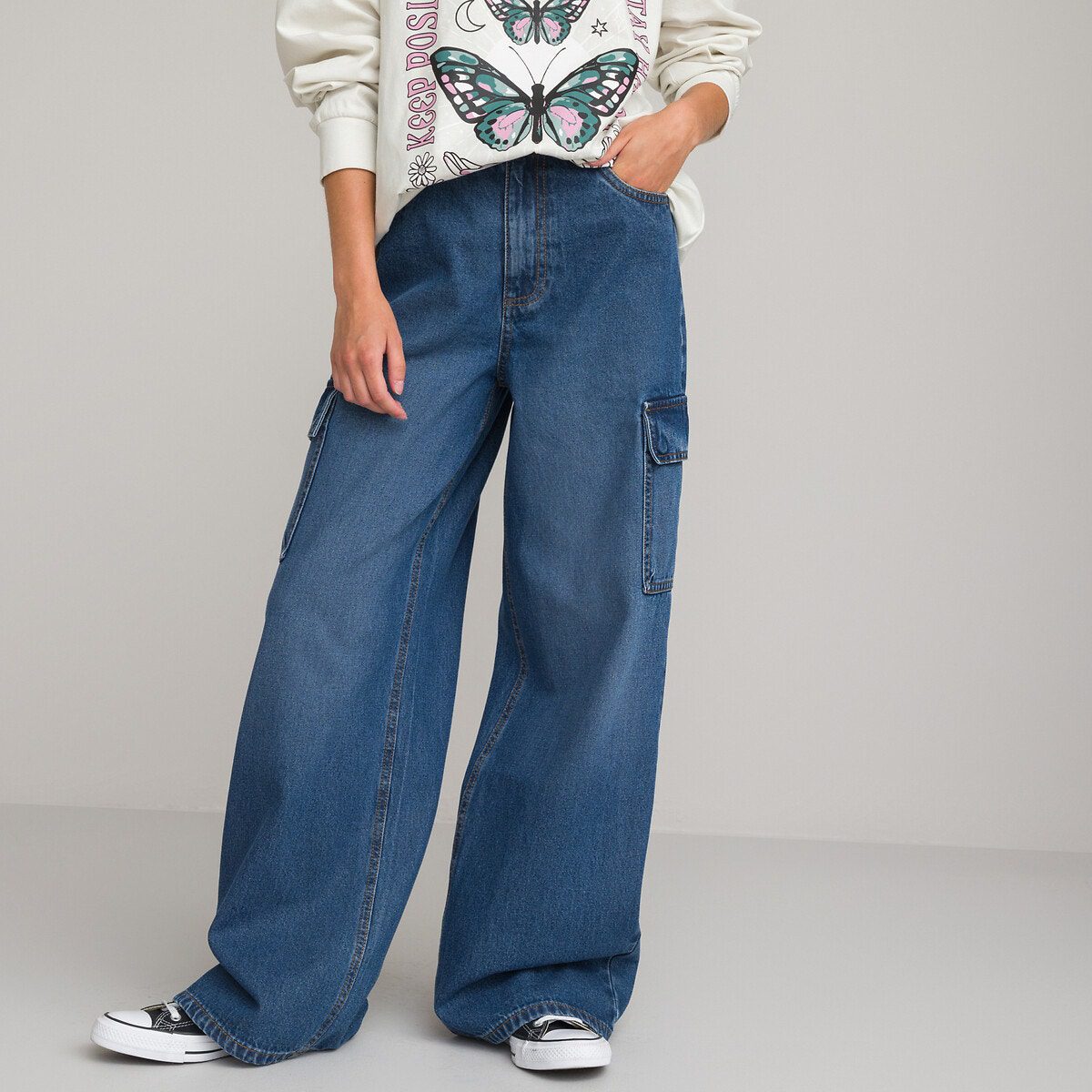 Περιγραφή – Φαρδιά, loose γραμμή – Κανονική μέση – Ρυθμιζόμενη μέση με λάστιχο και κουμπιά στο εσωτερικό – 2 τσέπες μπροστά – 2 τσέπες με καπάκι στα πλάγια – 2 τσέπες πίσωΣύνθεση και συντήρηση – 100% βαμβάκι – Πλύσιμο στο πλυντήριο στους 40°C – Σιδέρωμα σε μέτρια θερμοκρασία – Στεγνωτήριο σε χαμηλή ταχύτητα – Απαγορεύεται το στεγνό καθάρισμα / η χρήση λευκαντικού – ΒΙΩΣΙΜΗ ΤΕΧΝΙΚΗ ΞΕΒΑΜΜΑΤΟΣ. Η βιώσιμη τεχνική ξεβάμματος έχει σημαντικά μειωμένη κατανάλωση νερού σε σχέση με την κλασική τεχνική για τον ίδιο σκοπό.