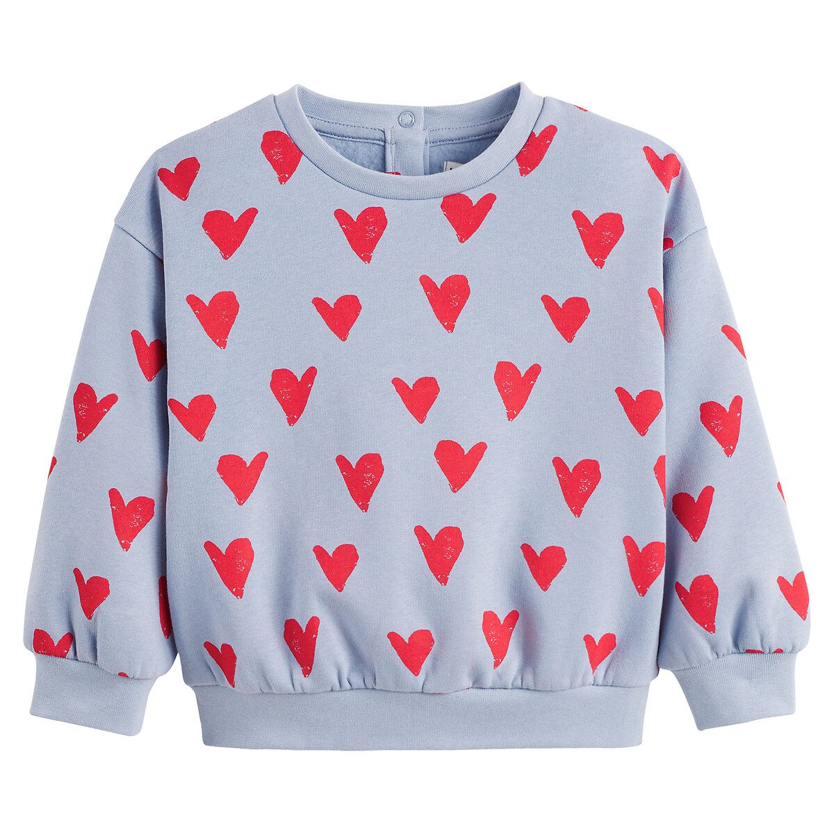 Φούτερ από φανέλα με στρογγυλή λαιμόκοψη και μοτίβο καρδιές Μπλε