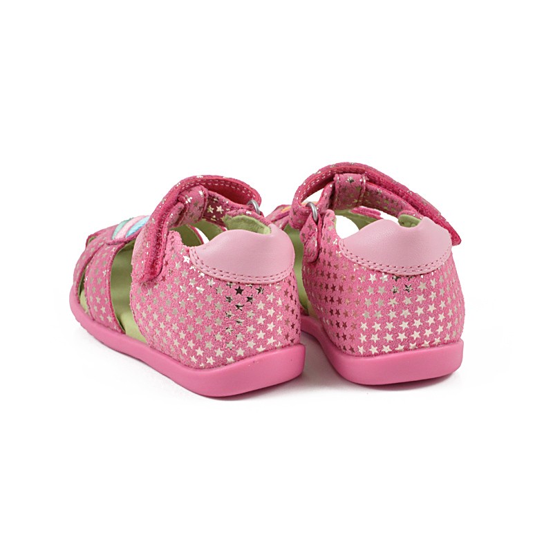 Εντυπωσιακό πέδιλο από δέρμα υψηλής ποιότητας σε ροζ χρώμα με γυαλιστερές λεπτομέρειες σε όλη την επιφάνεια! Διαθέτει μαλακό πάτο και ελαστική σόλα για ξεκούραστο πάτημα. Είναι κλειστό στη φτέρνα και στη μύτη για μεγαλύτερη προστασία.