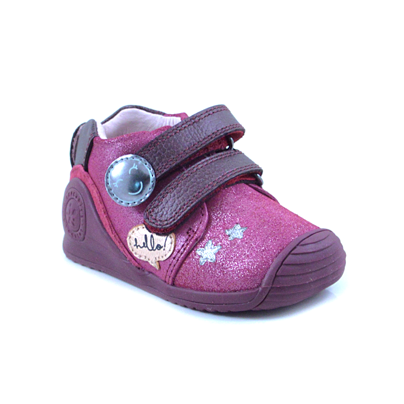 Ανατομικού σχεδιασμού μποτάκι, μαλακό στο πόδι με ελαστική σόλα ειδικά κατασκευασμένη για να προσφέρει σταθερότητα στο πόδι. Ιδανικό παπούτσι για τις πρώτες ηλικίες του παιδιού, εφαρμόζει εύκολα με αυτοκόλλητα λουράκια.