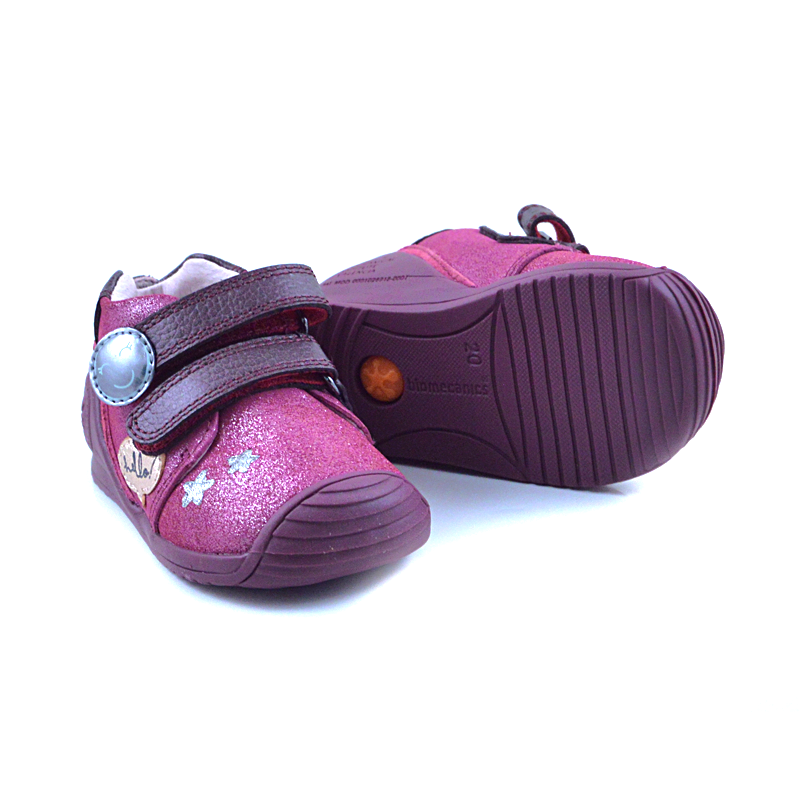 Αποκτήστε το προϊόν Biomecanics παιδικό μποτάκι για κορίτσια σε υπέροχο μοβ χρώμα με παιχνιδιάρικα σχέδια ζωγραφισμένα στο πλάι.