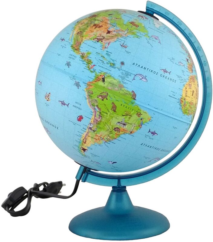 Λοιπά Αξεσουάρ Γραφείου: Υδρόγειος Σφαίρα Σαφάρι 25cm . Φωτειζόμενη γεωφυσική υδρόγειος σφαίρα,διαμέτρου 25 εκ, με διακριτά τα σύνορα των κρατών. Απεικονίζει την παγκόσμια πανίδα. Με ευχάριστο τρόπο βοηθάει τα παιδιά να μάθουν ποιό είναι το φυσικό περιβάλλον κάθε ζώου. Επίσης όταν ανάβει εμφανίζονται τα θαλάσσια ρεύματα.
