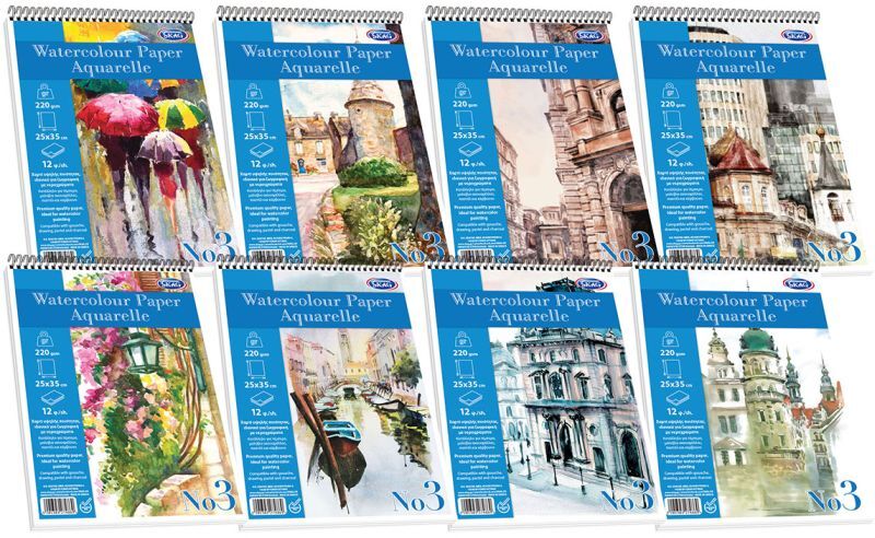 Μπλοκ Ζωγραφικής: Skag Μπλοκ Ακουαρέλλας Όρθια 25x35cm No3 12 Φύλλων-1Τμχ .Η επιλογή του σχεδίου θα γίνεται τυχαία.