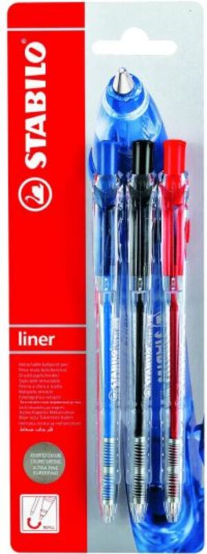 Στυλό: Stabilo Στυλό 308 Μπλε – 3Τμχ .Το στυλό STABILO 308 έχει διαφανές σώμα και μηχανισμό αντοχής με κουμπί για είσοδο και έξοδο της μύτης. Η μύτη του είναι ανθεκτική από ατσάλι για αξιοπιστία και η λαβή τους εργονομική αντιολισθητική. Συσκευασία των 3 τεμαχίων σε μπλε χρώμα.